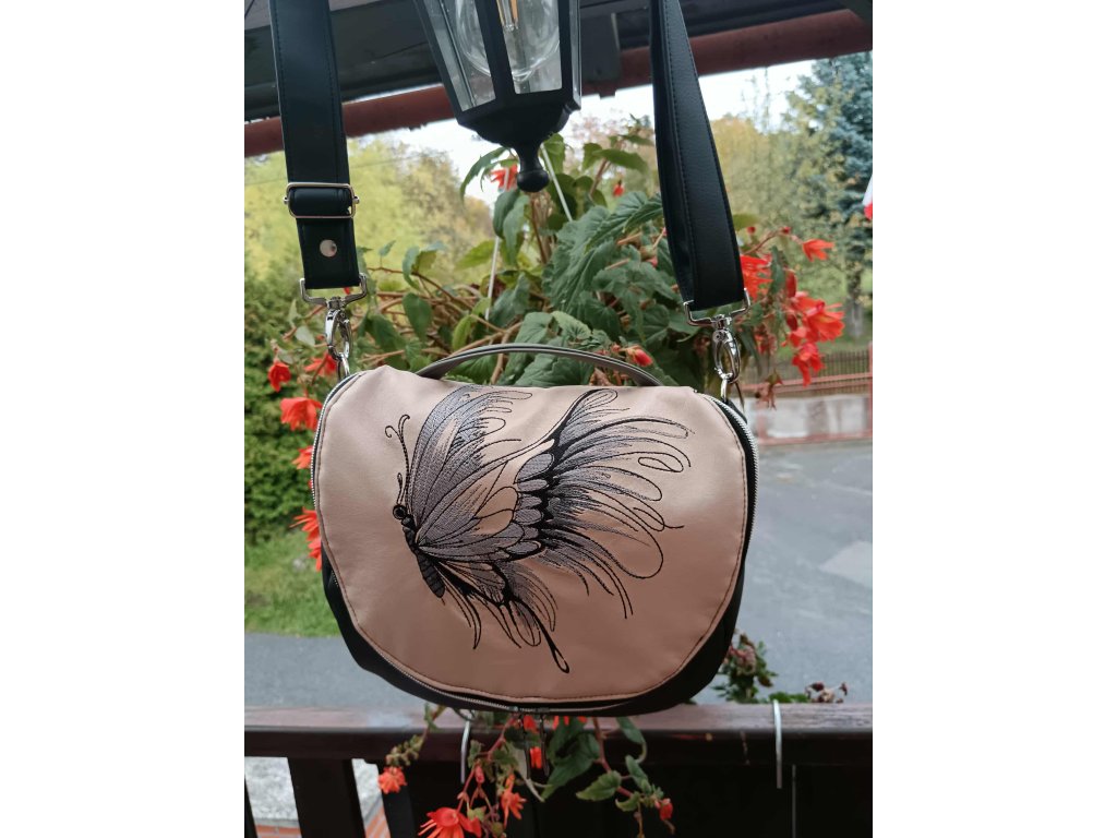 Vyšívaná kabelka menší velikosti. Díky 3D tvaru poskytuje ale poměrně hodně prostoru na vše potřebné.