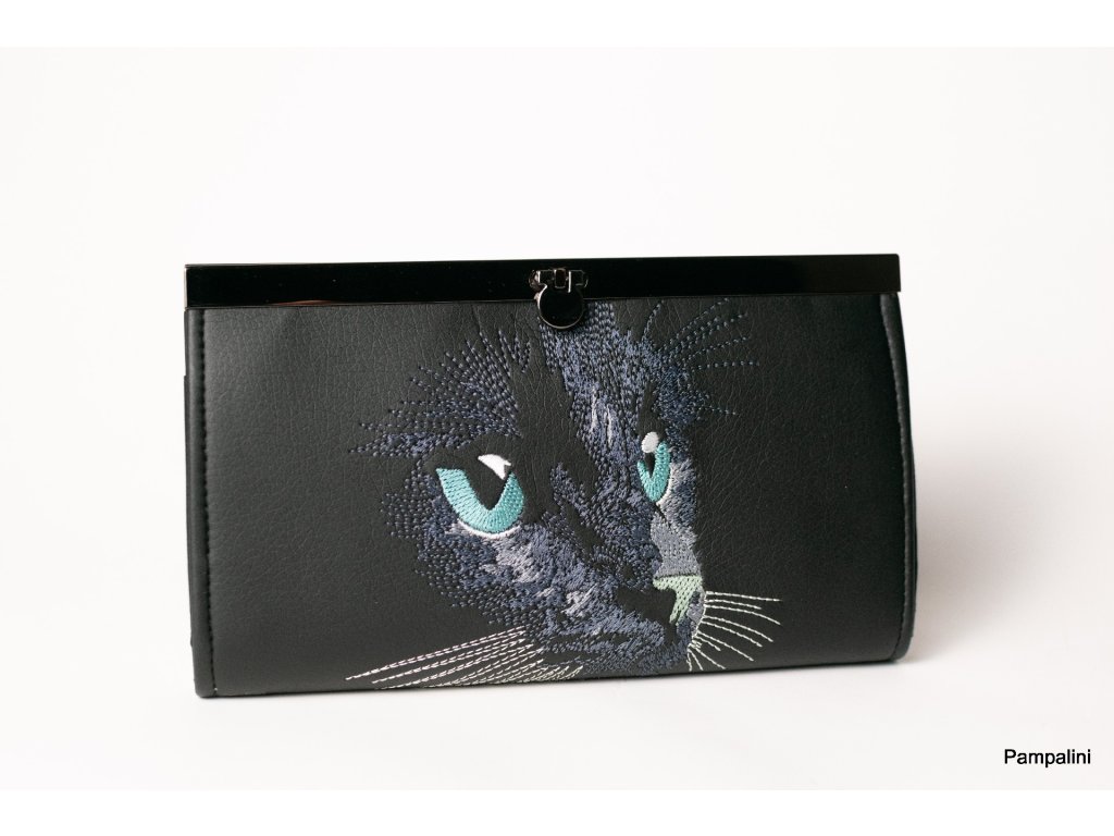 Rámečková peněženka vyšívaná - Kočka modrá
