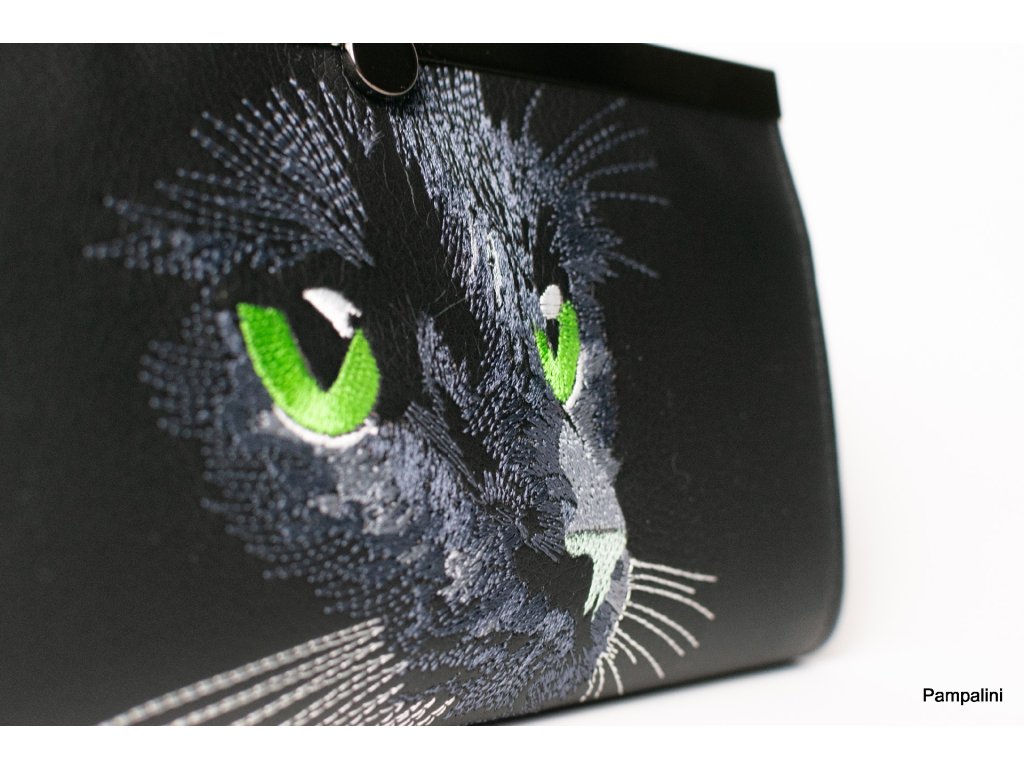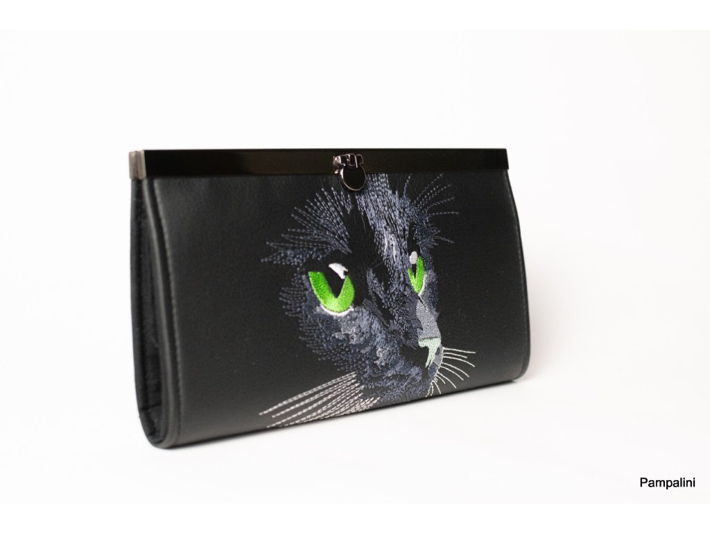 Rámečková peněženka vyšívaná - Kočka zelená