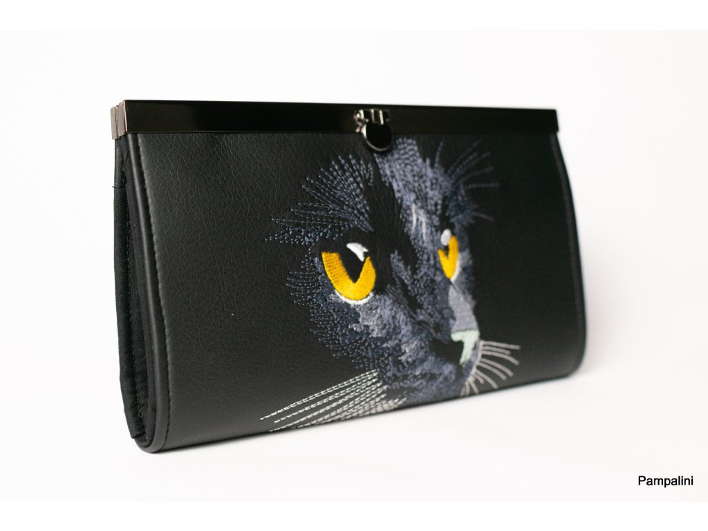 Rámečková peněženka vyšívaná - Kočka žlutá