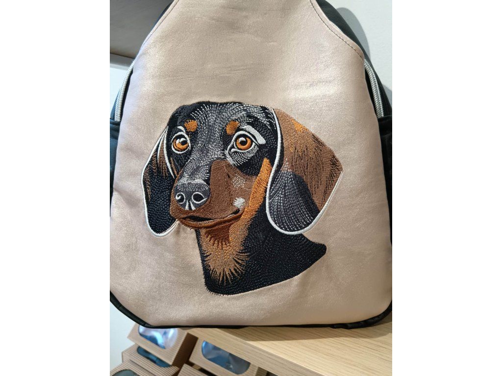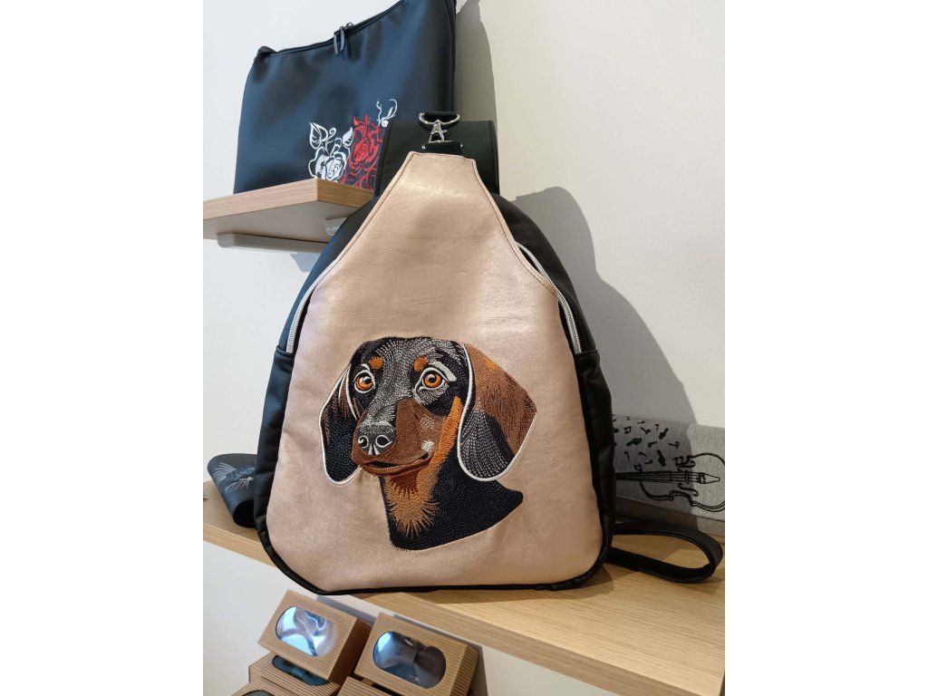 Vyšívaný batoh Arnošt - Jezevčík na růžové
